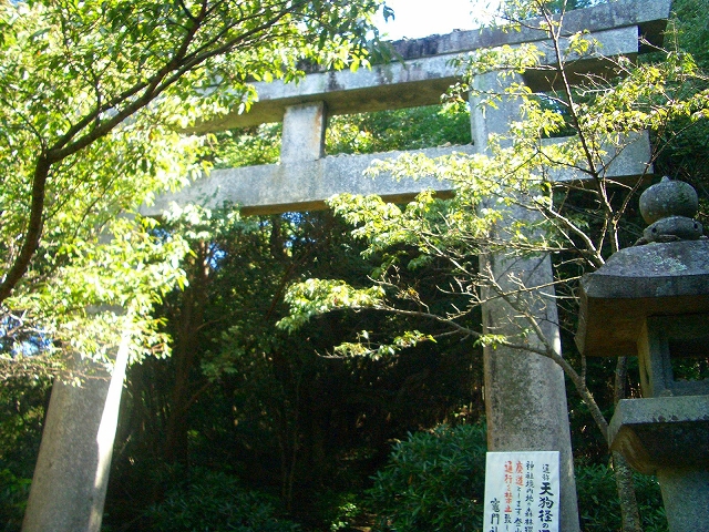 階段状に並べられた自然石の石段を登り、2分も辛抱して登ると、やっと「一の鳥居」にたどり着く。