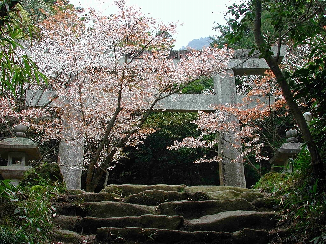 ここで一服し、鳥居をくぐると自然石の石段が美しいほど整然と敷き込まれている。