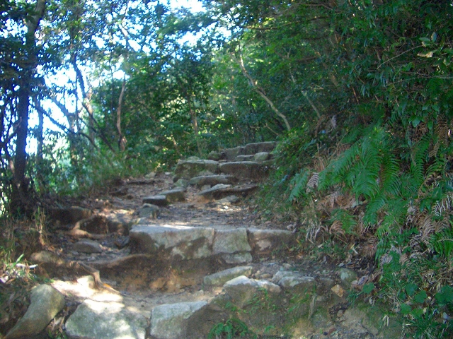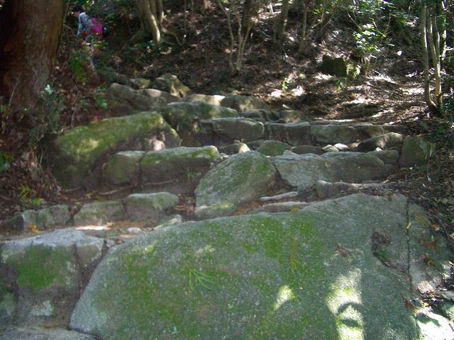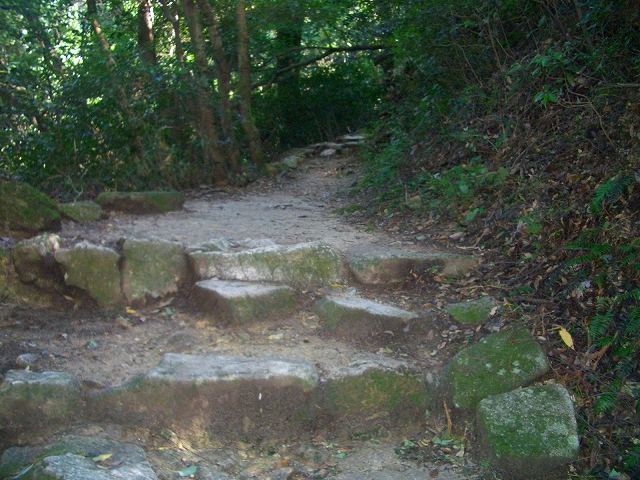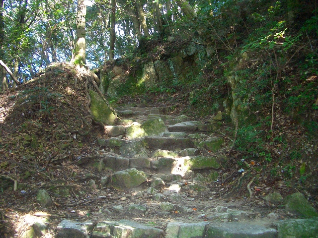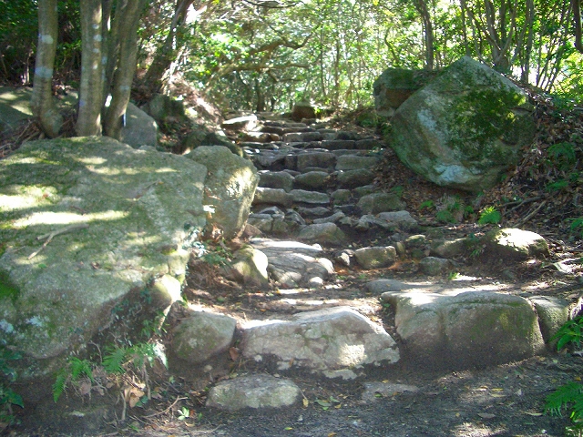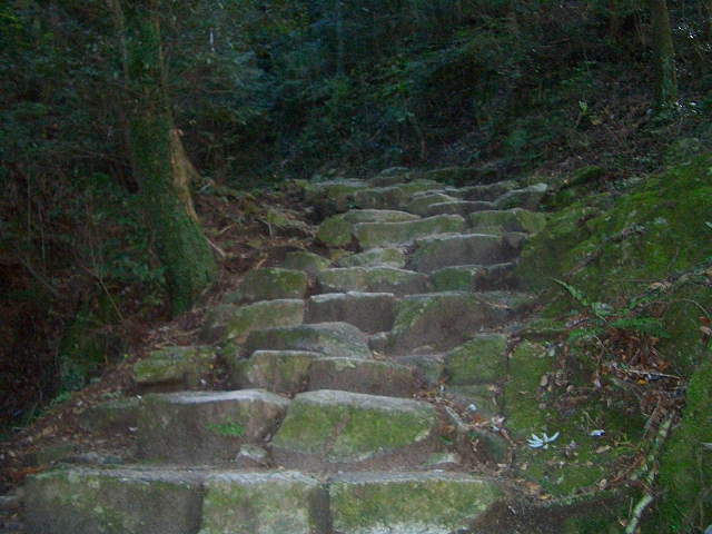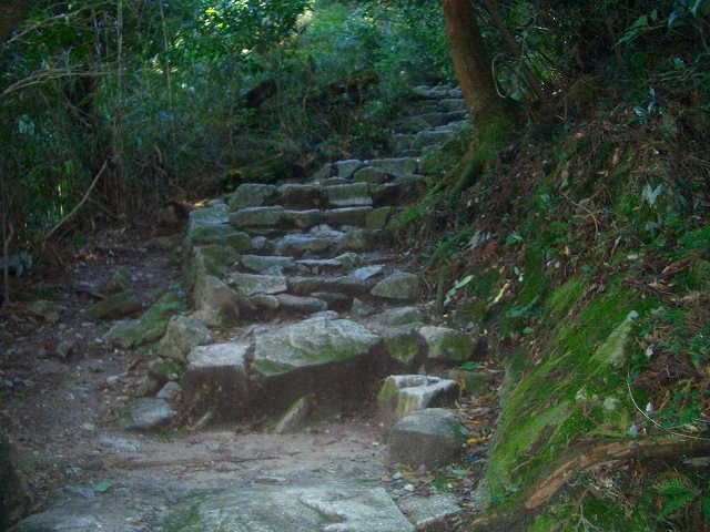 石段は、左手へさらに伸び右手へカーブし登って行くとその直進した道と出会う。