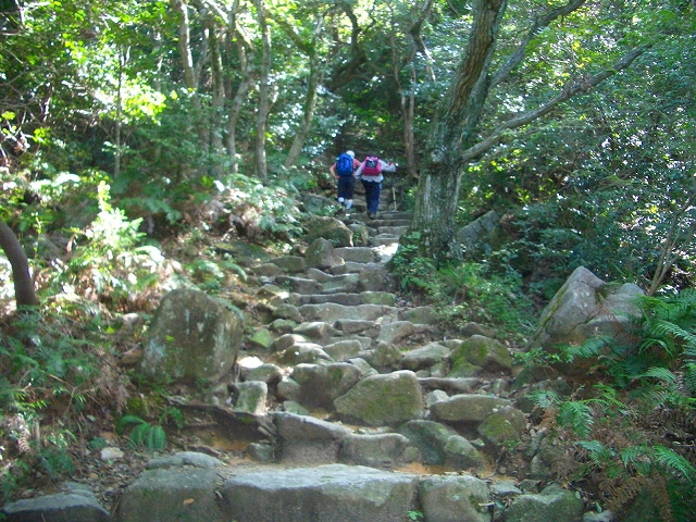 さらに宝満山の段差は英彦山のそれより大きく、 石段は、足に疲れを感じる前に休むことが一番いい。
