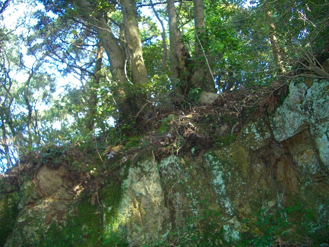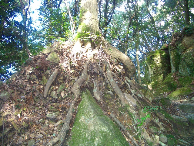 右手にも、数本の木が幹を寄せ合い、岩にしがみつくように幹を伸ばしている。