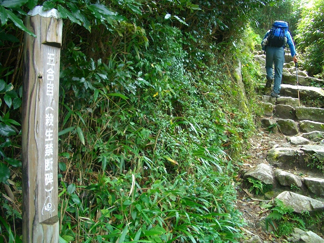 その横に標柱が立てられ「5合目(殺生禁断碑)」と書かれている。