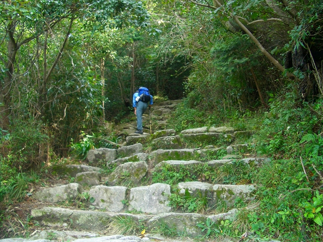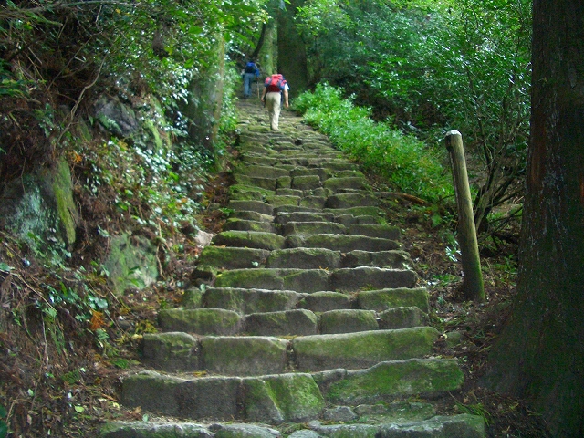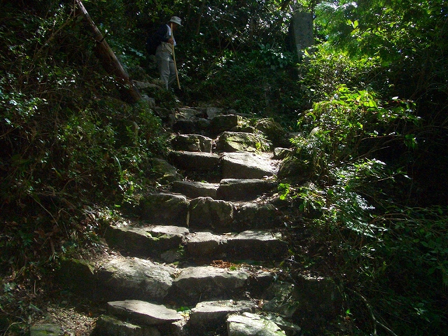 石段を左右に蛇行し「殺生禁断」から4〜5分も登ると、