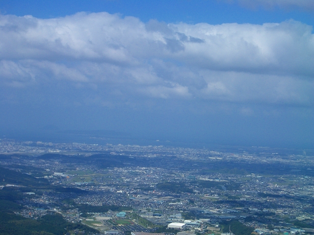 足安めに立ち止まり、振り返ると少し沈んだ素晴らしい展望が得られ、福岡の町並みから