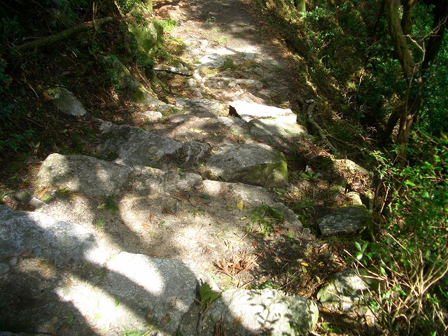 数メートル行くと、道は左手へカーブするとまた石段になる。