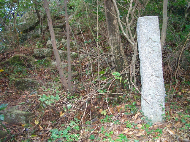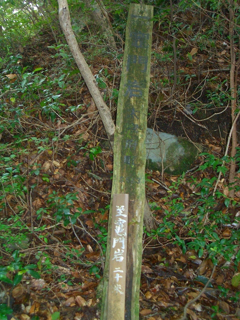 さらに石段を登ると、右手に木柱が立てられ