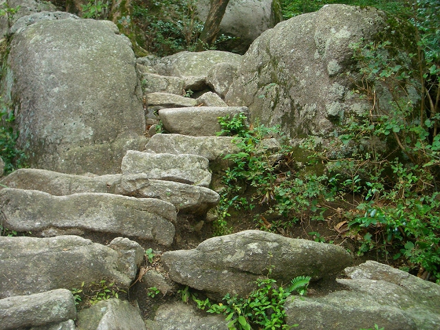 三つの岩の間に、程よい石段