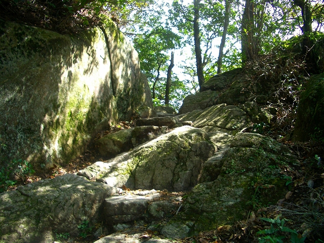 中宮跡より、左(西)に廻ればこのコース、金剛兵衛剣窟、式部稲荷上宮、伝教大師が遣唐船の安全を祈られた伝教大使窟がある。