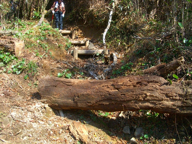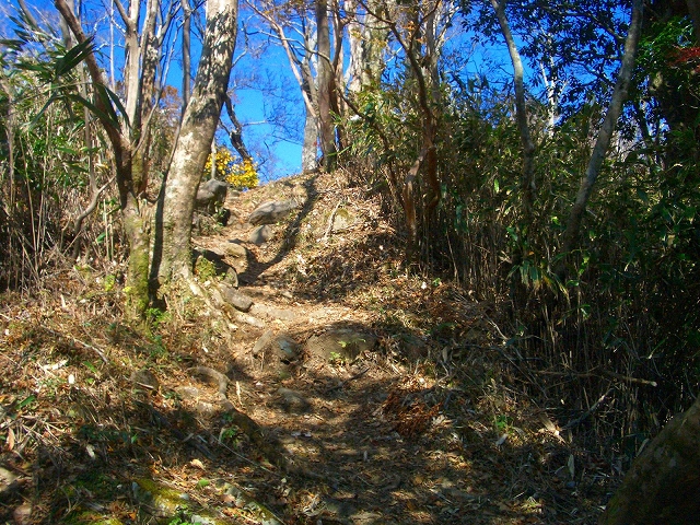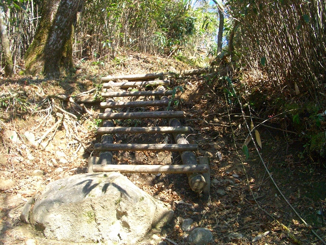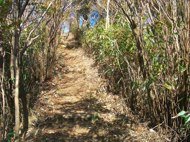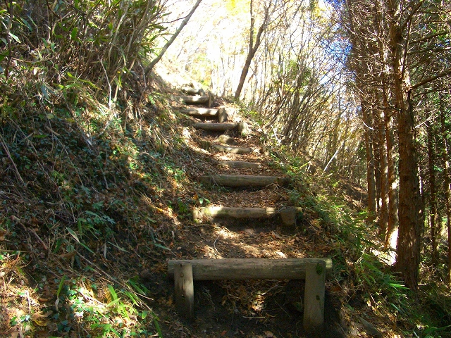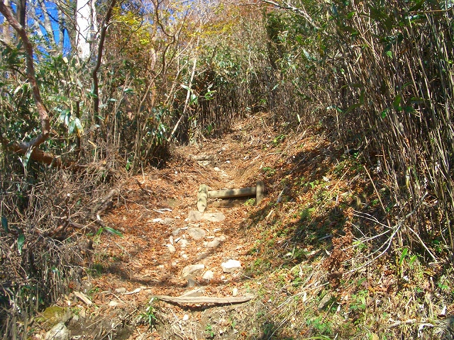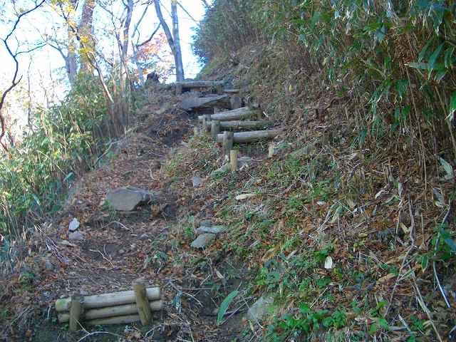 急坂を少し行くとさらに木段が付けられ、途切れながら8段を数える。