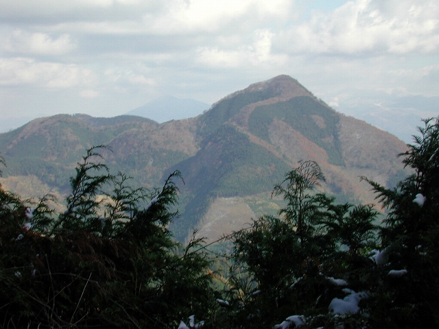 右手へ振り向くと、林の隙間に津江三山の一つ「渡神岳」がその全容を見せてくれる。