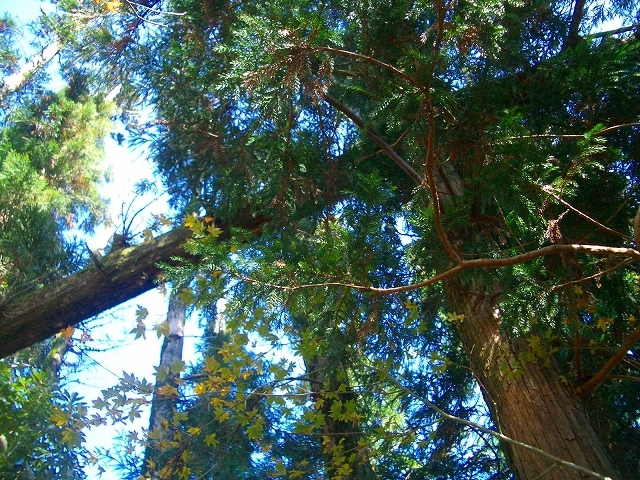 右手にはスギが植林され、大きく幹を伸ばすスギが目に付く。