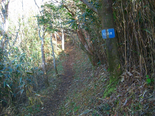 木段を登ると傾斜はゆるみ右手へカーブして行くと「えごのき」の樹名板が目に付く。