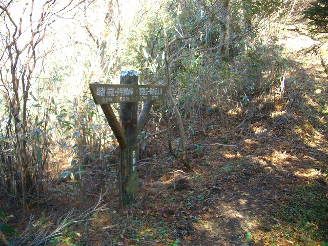 急坂を下りさらにゆるやかに登ると3〜4分で三叉路に着く。