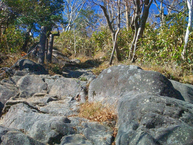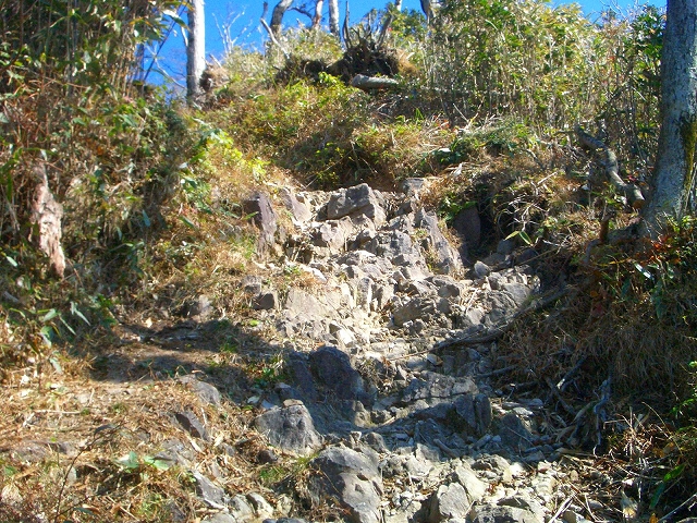 1歩踏み込むと、露岩の多い急坂になり、すぐ