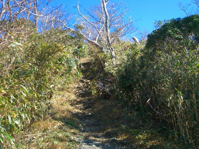 スズタケの道をゆるやかに登ると、次第に傾斜を増してくる。