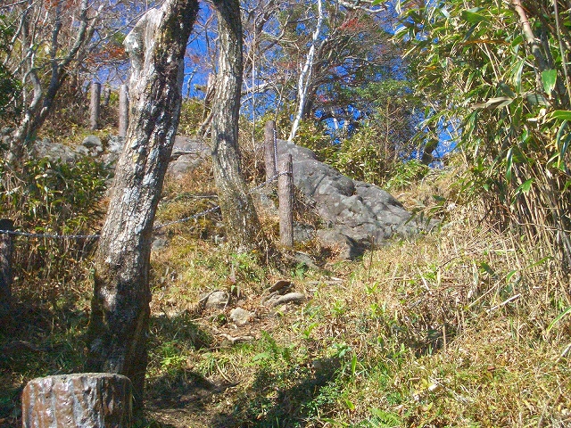 2メートル以上もあるようなスズタケの急坂には、岩が目立って多くなる。