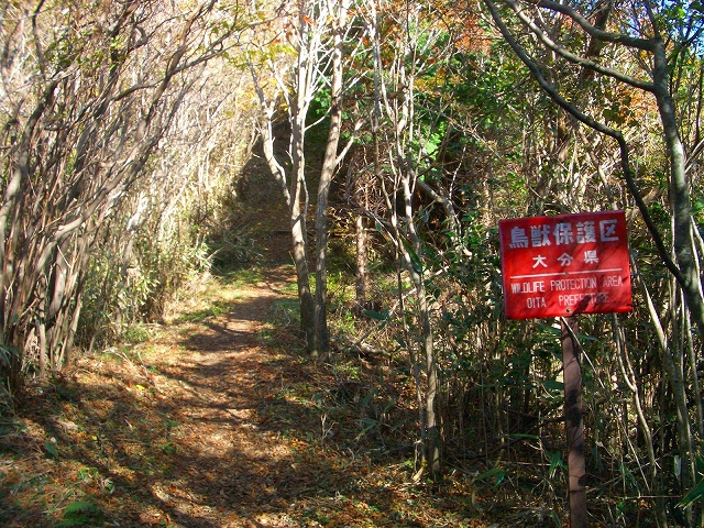 右手には案内板が立てられ「御前釈迦自然歩道」と書かれている。