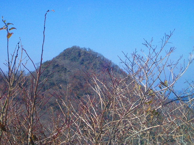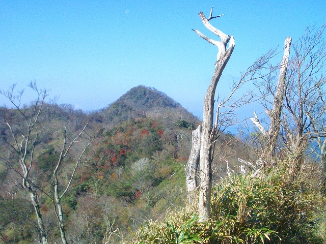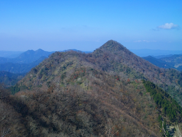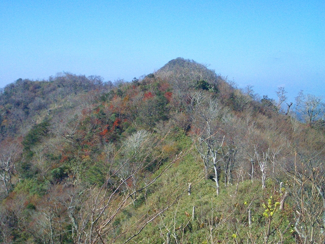 手前の稜線上には、御前岳への道が所々に見て取れる。