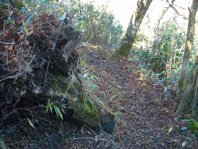 倒木を右手に数メートルも登り、左右に蛇行しながらゆるやかに下っていく。