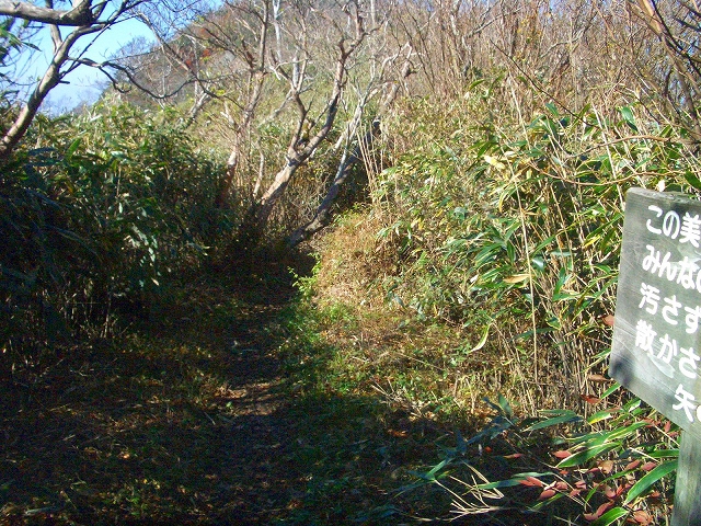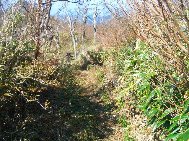 やせ尾根の両脇は依然スズタケが密生し展望は得られない。