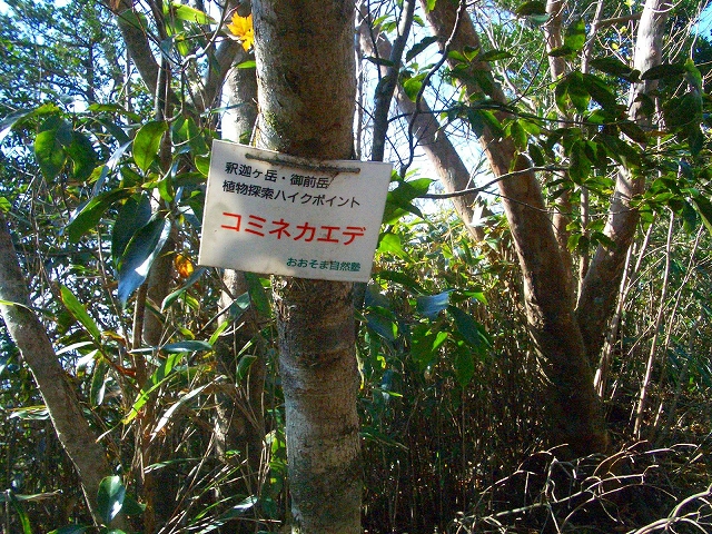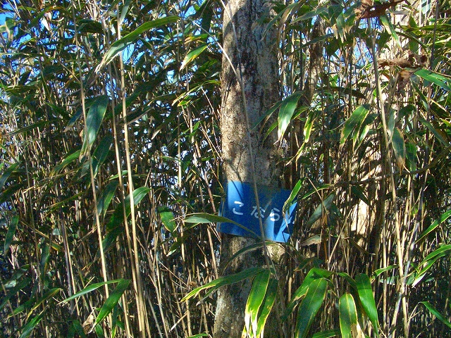 そして、足元にコケむした露岩を見て、左手へカーブして行くと、右手に「こなら」と書かれた樹名板が付けられている。