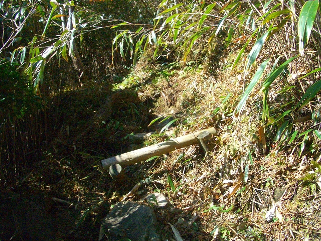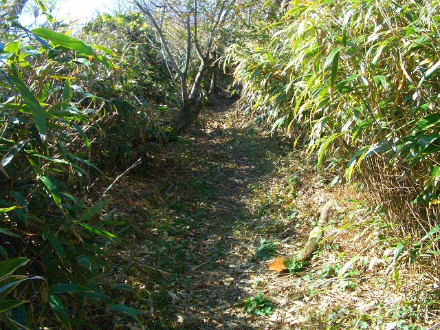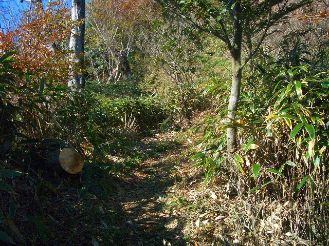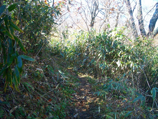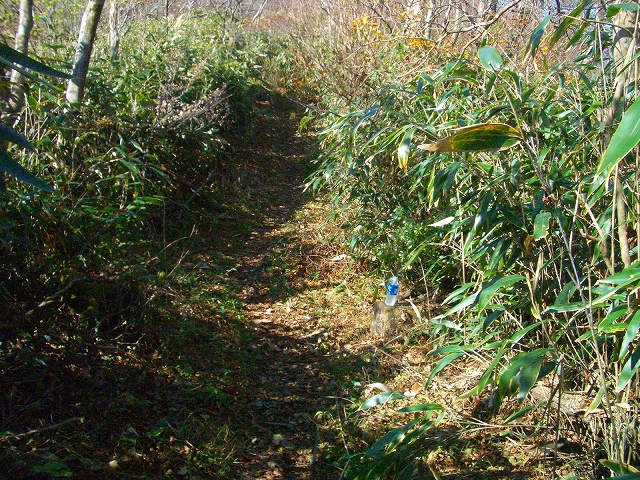 スズタケが密生するわずかな傾斜を2〜3分も登ると、右手に