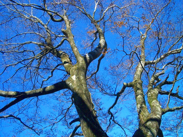 正面に、ブナに似た大きな木見て、歩きやすい道をゆるやかに下っていく。