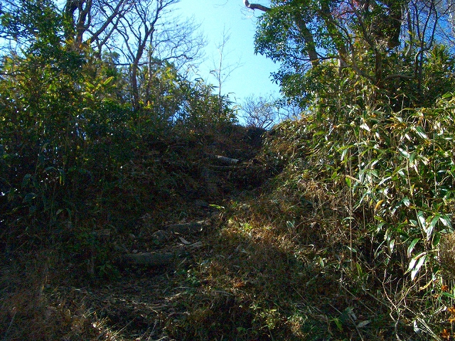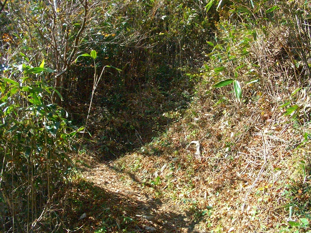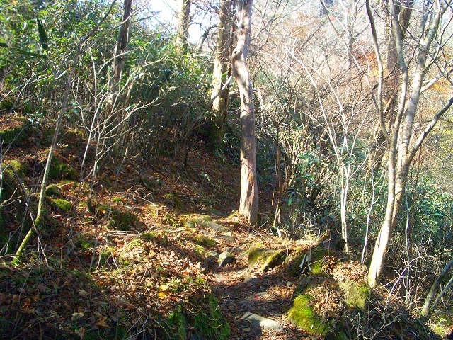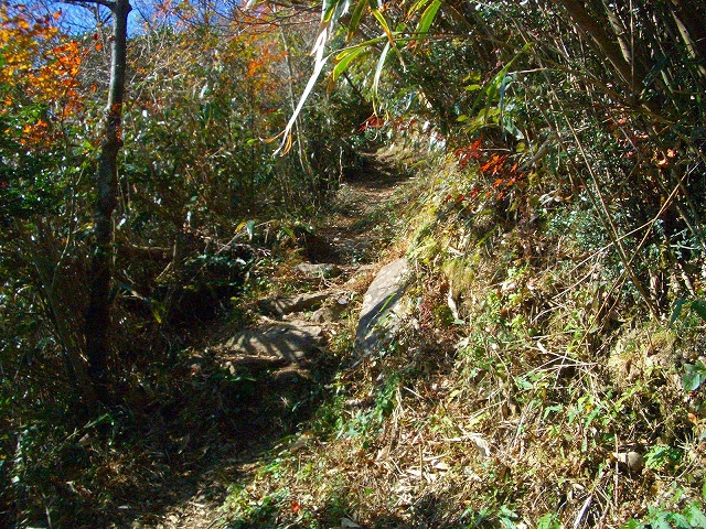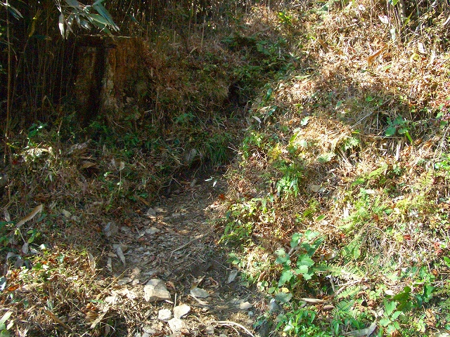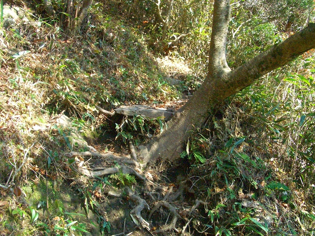 壊れた木段の左手を抜け、1メートルほどの段差を登り右手へカーブしていく。