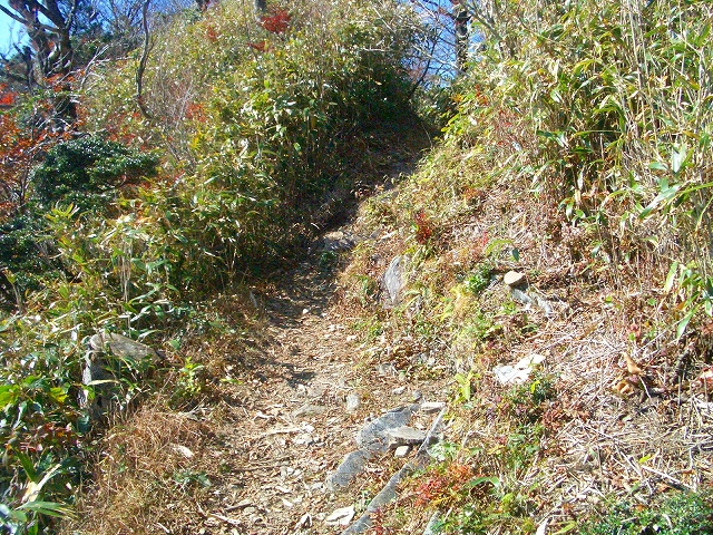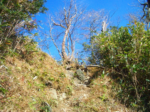 ゆるやかな登りは、またゆるやかに下りやせ尾根の