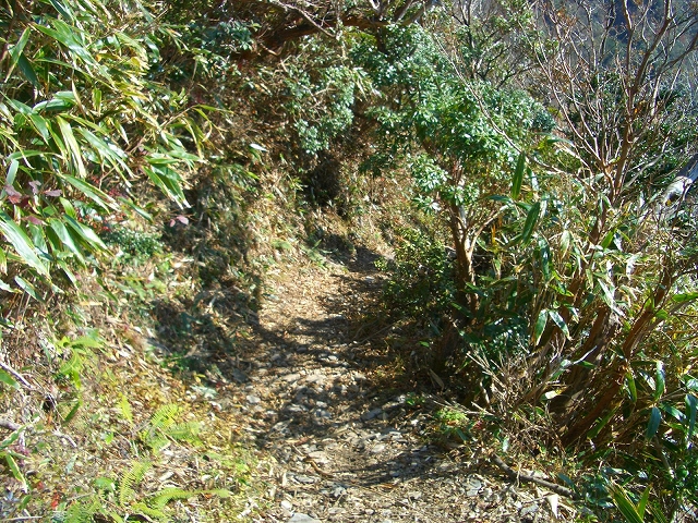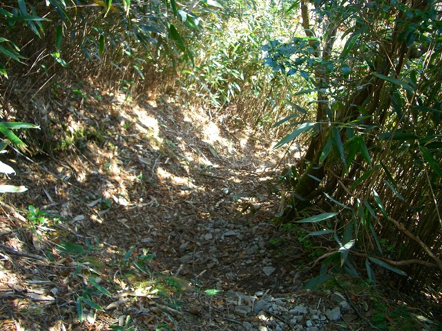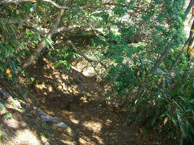 ゆるやかな下りを少しばかり行くと、傾斜を増し急坂になる。