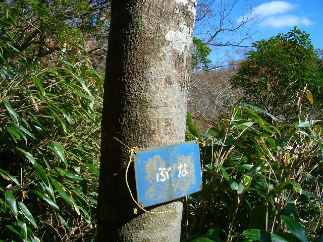 さらに急坂を少し下ると、左手に「ぶな」の樹名板を見る。