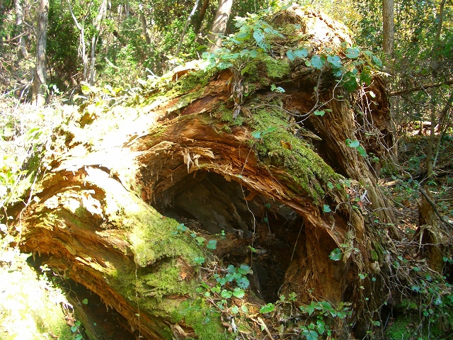 すぐ左手に「ぬるで」の樹名板を見ながら下ると、左手に大きな枯れた株が目に付く。