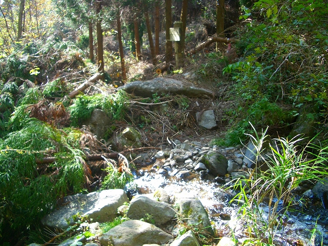 沢を右手に少し下ると、右手にスギを見てその手前か先から右手へ沢を渡る。