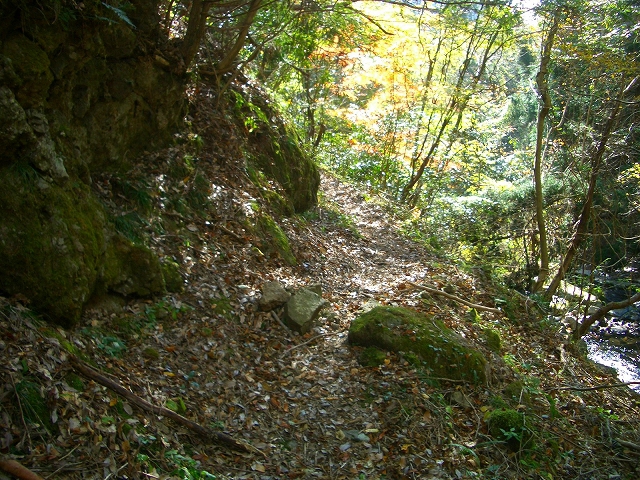 さらに左手に大きな岩かべを見て左手へカーブすると、