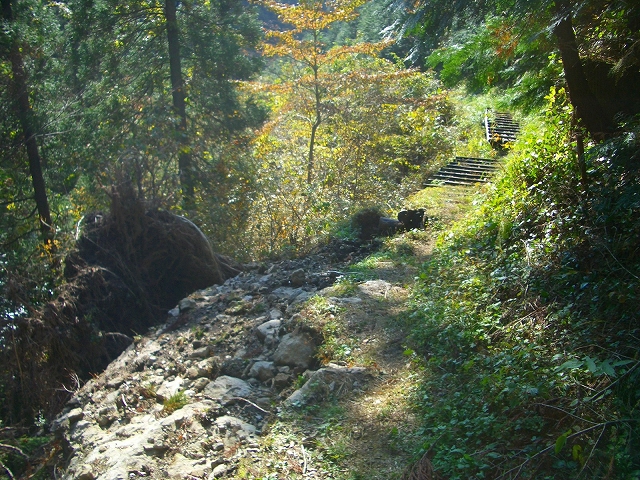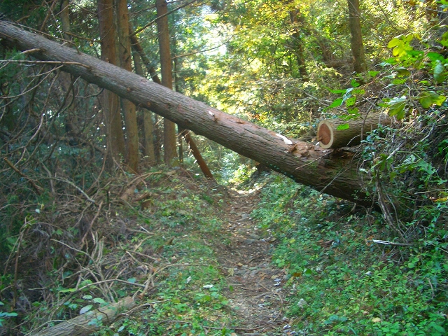 が、 そこも木が倒れ上土まで剥ぎ取って左手沢に落ち込んでいる。