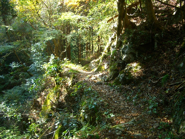 露岩が多い道は、すぐ密生する林の中へ入っていく。
