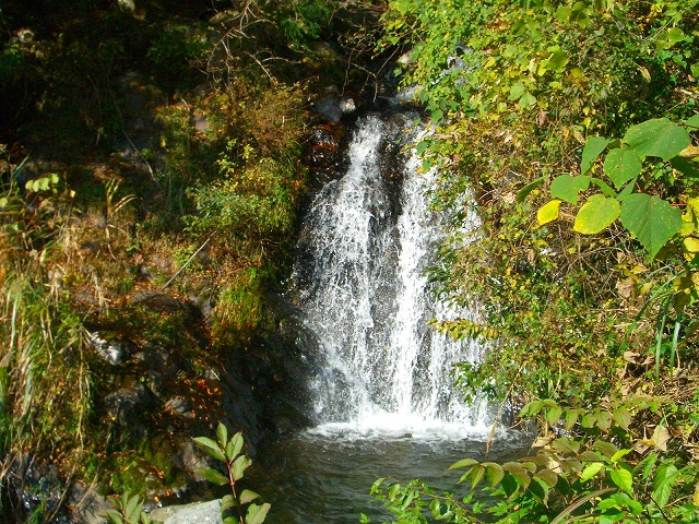 このヒノキは、近年植林されたものであるが、 2〜3年前までは左手沢の対岸に広がる斜面の紅葉を楽しむことができたが、今はもう見ることができない。