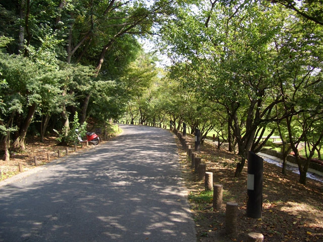 車道は、公園を行くように、右手道沿いには桜が植え込まれ、左手はもみじが幹を並べ出だしはいい。