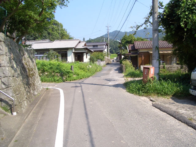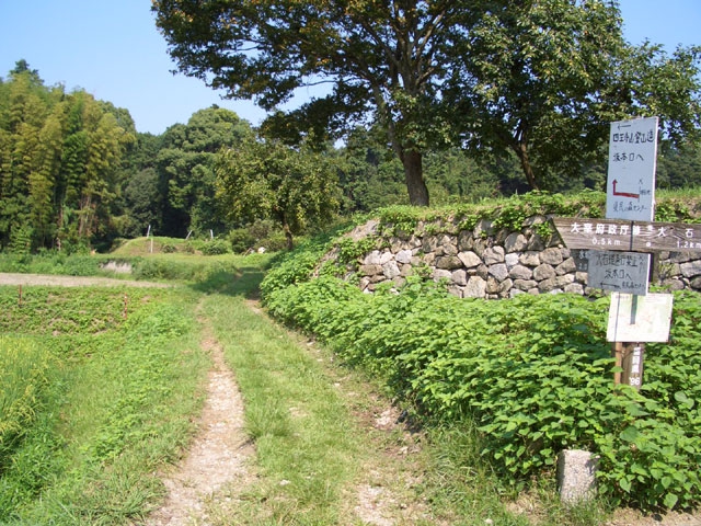 道は左右に小さく蛇行し伸び、さらに左手へカーブし登ると、道は右手へ分岐し右手へ数メートル登ると、右手に「大石垣へ」と書かれた