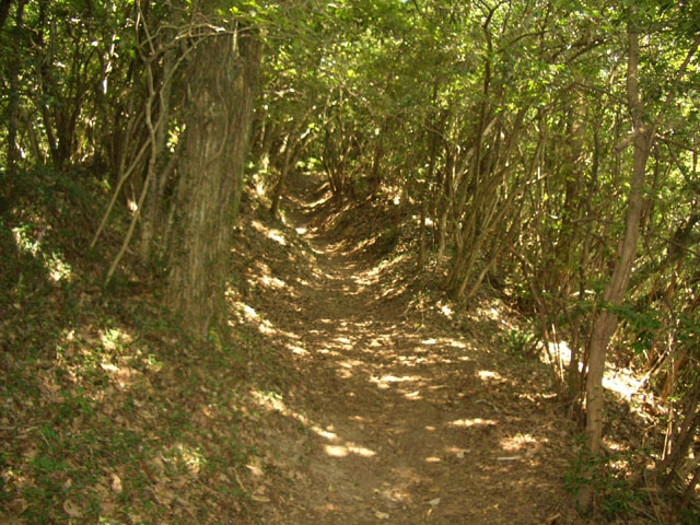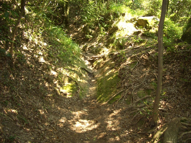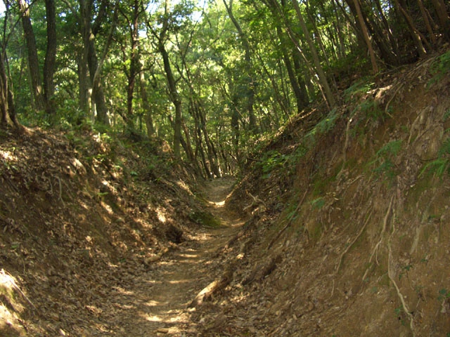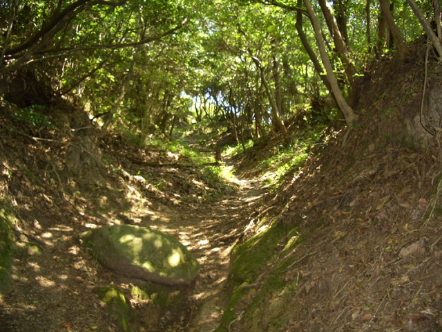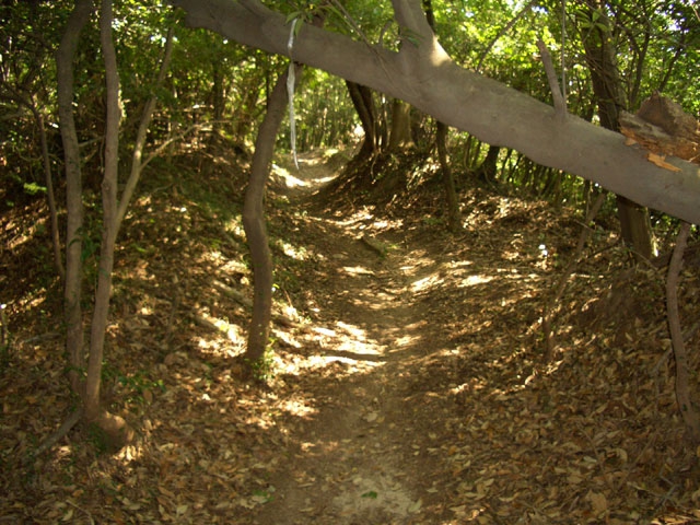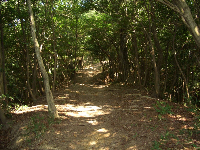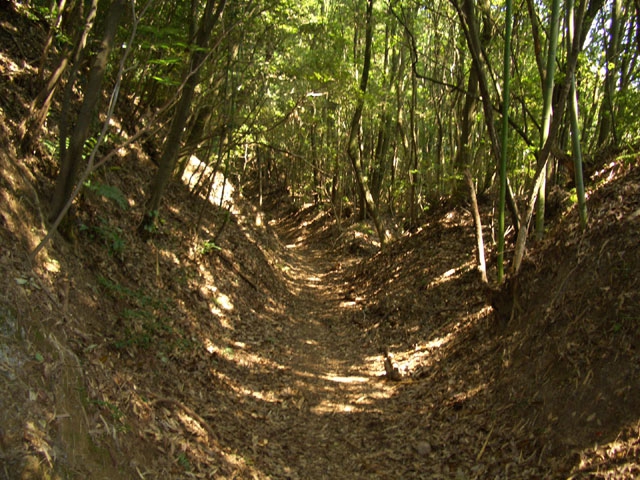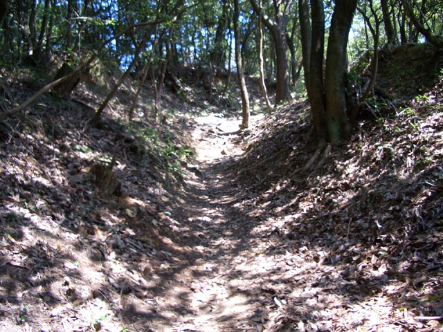 道はさらに伸び、典型的な形をした土塁をゆるやかに下って行くと