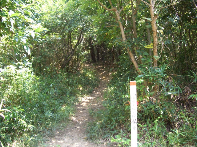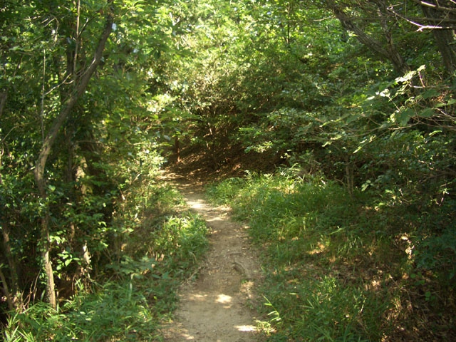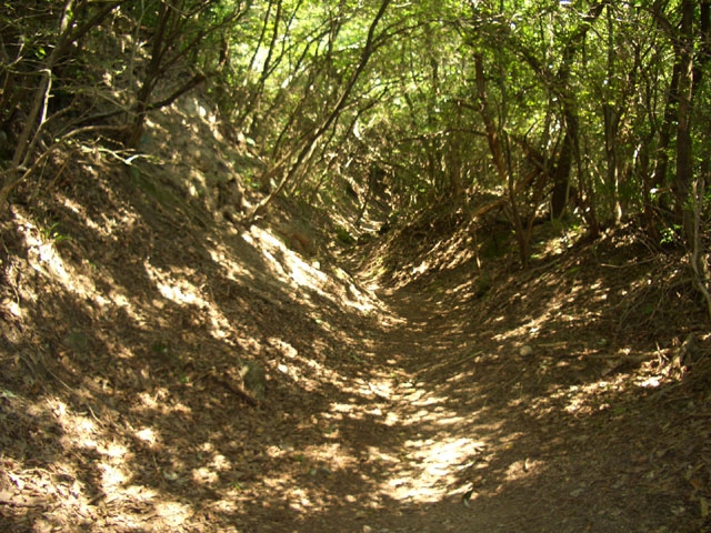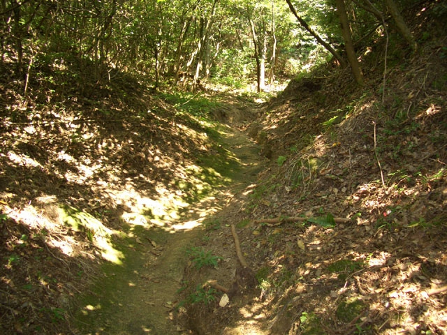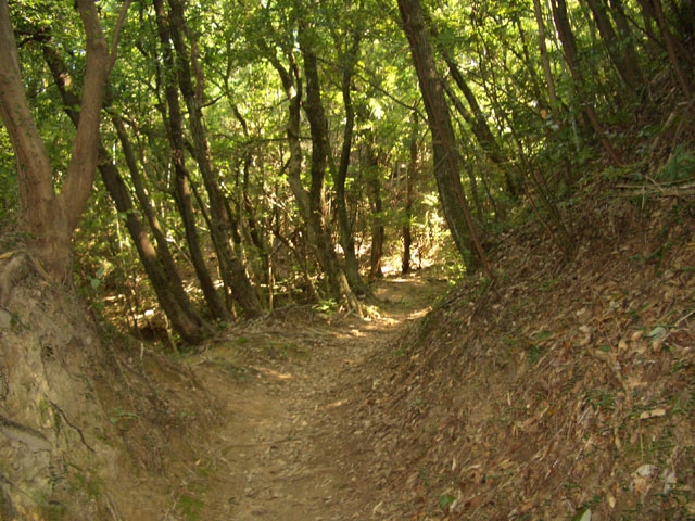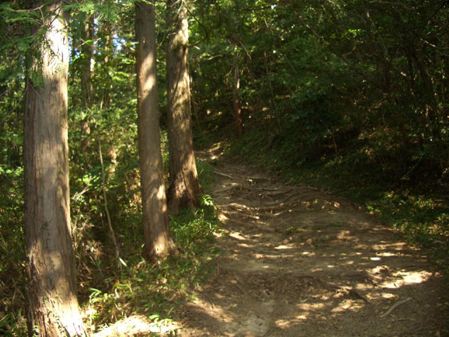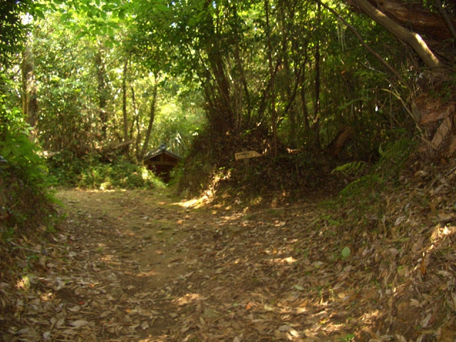 を見て右手へ数メートルも行くと左手に分岐、ここを右手へ直進し林の中を行く。
