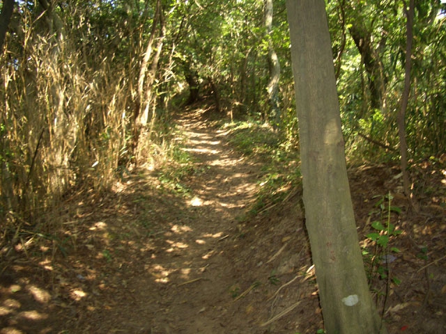 道は、次第に傾斜を増すが1分も登ればゆるみ、左右に蛇行しながら登っていく。