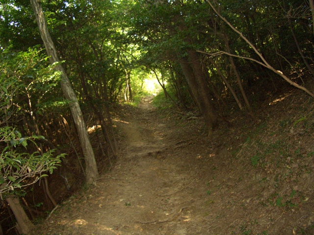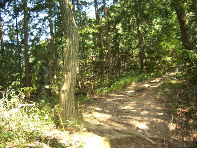 林の中に入ると、日は閉ざされ薄暗い道を登っていく。