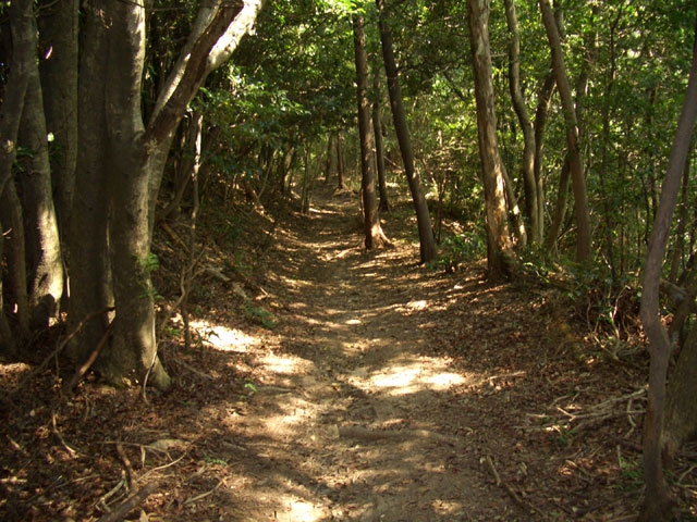 道は、この辺りからゆるやかに登りはじめ、周囲は自然林に変わる。