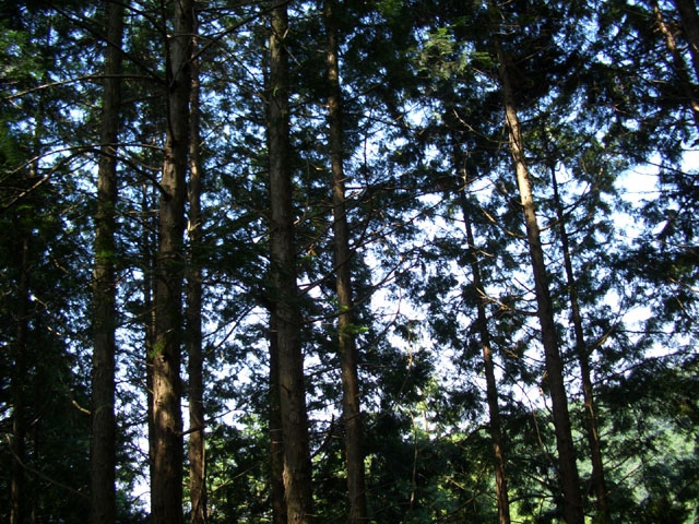 周囲を取り囲むヒノキ林は、1、2分も行けば次第になくなりまた自然林に変わる。