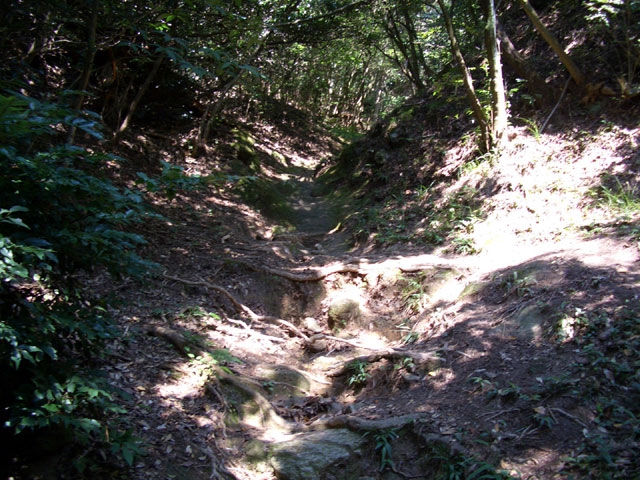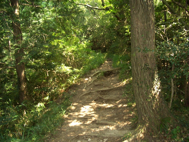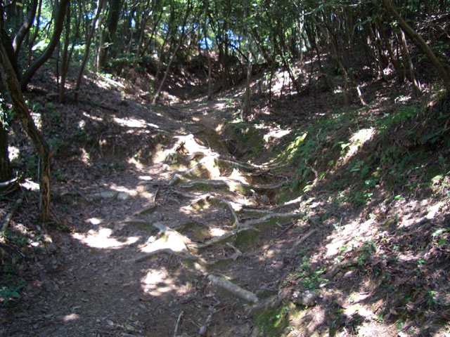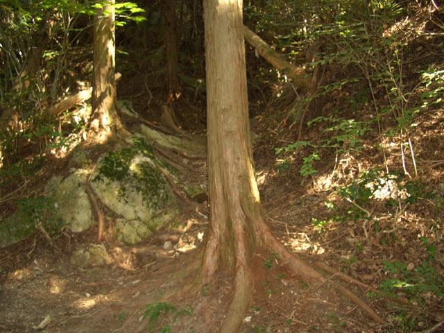 道は少し傾斜を増し、さらに木の根が多くなる。