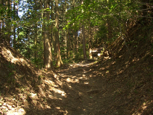 さらに落ち葉の道を蛇行し登っていくと、またミゾ道になる。