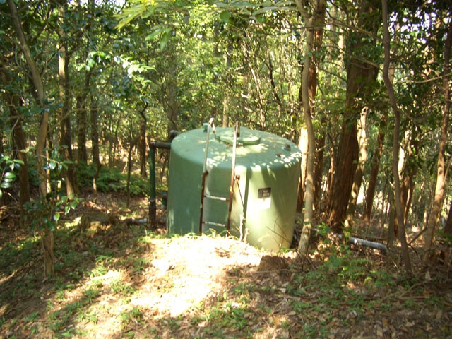 さらに左手へ下って行くと、右手に緑色のタンクを見る。