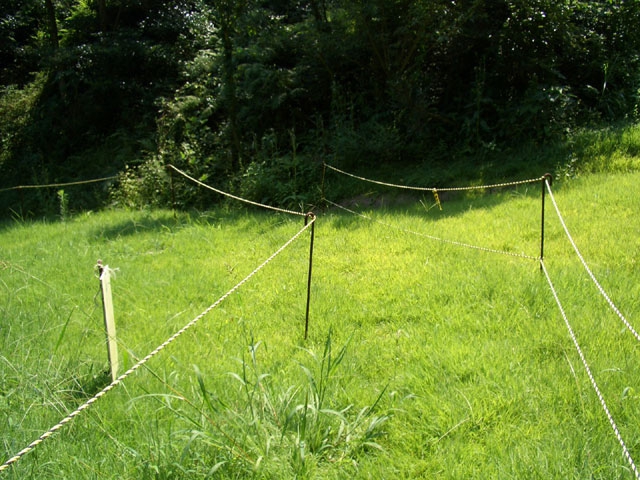 草地を誘導するようにロープ