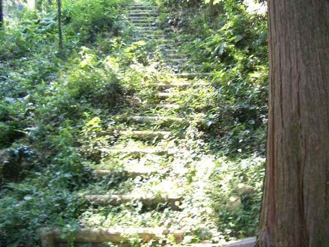40段ほど木段を下り、右手へ数メートル下ってまた木段になる。